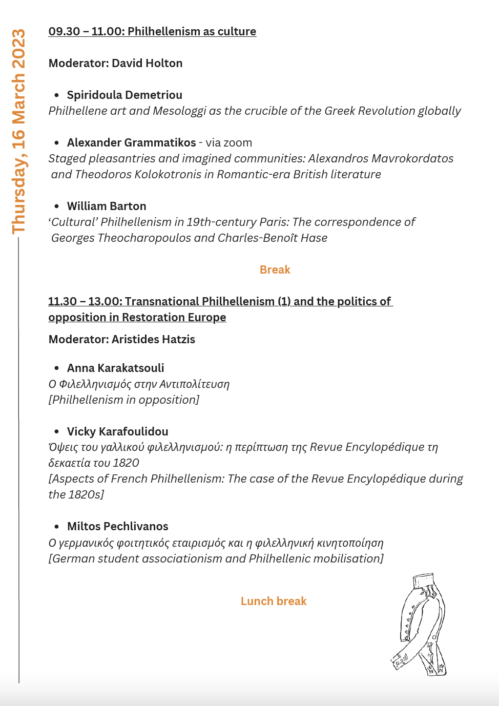 The LAGOOS project was represented at the conference Philhellenism and the Greek Revolution of 1821: Towards a Global History, organised by the British School at Athens and the Stavros Niarchos Foundation. The event took place over three days (15th–17th March 2023) at the National Library of Greece, Athens, and brought together over 36 participants: https://www.bsa.ac.uk/research-2/britishphilhellenism/