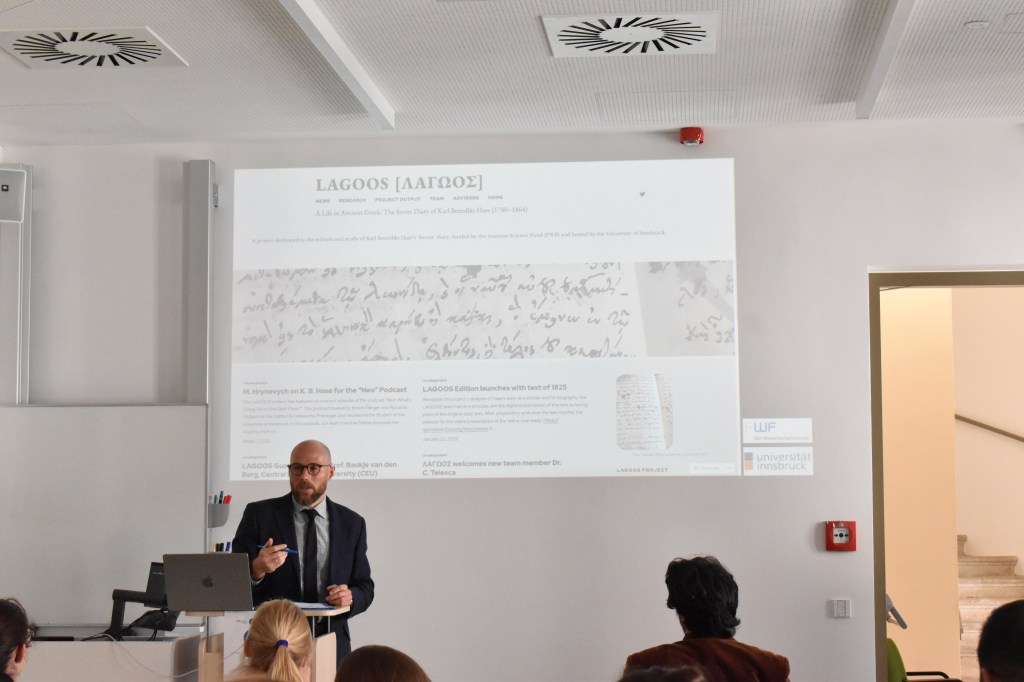 From the LAGOOS project, two contributions were foreseen for the event: Mariia Hrynevych’s paper on “The History of Reception of the Fragments of Toparcha Gothicus by Karl Benedikt Hase (1780-1864)”, and a keynote lecture from William M. Barton with the title “Between Ancient and Modern Greek: Karl Benedikt Hase and Byzantine Studies in 19th-century Paris”.
